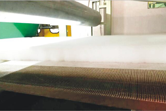 從產(chǎn)品的縱向側(cè)面觀察,纖維網(wǎng)的立體蜂窩狀結(jié)構(gòu)使材料獲得最大的彈性和抗壓性,在長期或反復(fù)承載后仍保持了良好的回彈性能。